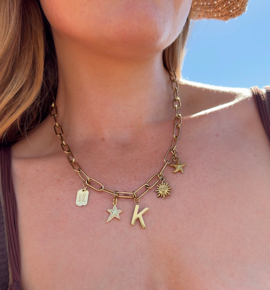 Explore our collection of gorgeous pre-designed charm necklaces. For letter designs, simply choose your desired initial to make it yours!